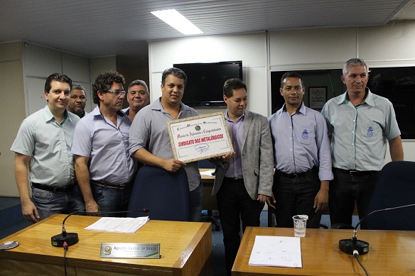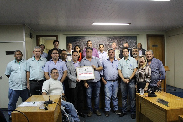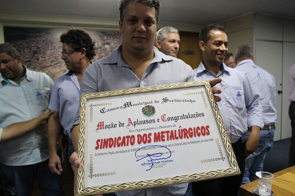 "É hora de luta, mas, não podemos esquecer do que já conquistamos. Obrigado aos vereadores, em especial ao vereador Niltinho por essa homenagem", agradece o presidente Samuel Marqueti e sua diretoria, na entrega da Moção na Câmara Municipal de Sertãozinho, em 2 de junho de 2015.